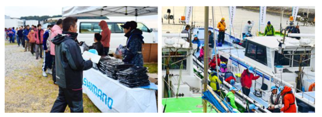 使用タックルの条件はリール、ロッドのどちらかがシマノ製品であること。三本鈎で錘30号餌は選手各自で