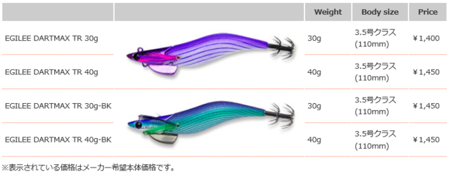 「エギリー・ダートマックスTR」はボートエギング専用に開発したスペシャルアイテムです。