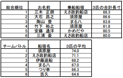 そして、船宿チ-ム戦では平均74.0cmで須原屋様が優勝を手にした。