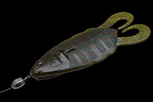 上~宙層にサスペンドしたブルーギルに付いたバスを釣る場合、着水音から始まるフォール主体のカバーゲームとなることが多く、「フリップギル」のナチュラルな着水音と、揺れるようなスライド&ワイドスパイラルフォールにより、着水の瞬間からビッグバスを引きつけて力強いバイトを誘発。