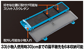 小物入れを使用する場合は30cmまでの穂先が収納可能。