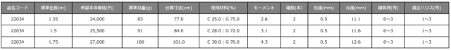 ※C=カーボンファイバー、G=グラスファイバー