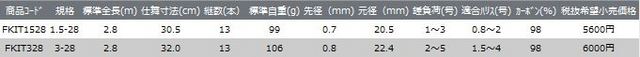 扱いやすい全長2.8mで繊細な1.5号と汎用性に優れたと3号のラインナップ。