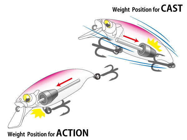 スーパースリムデザインとLBOのコラボレートが圧倒的な泳ぎ出しの良さを生み出し、着水と同時に誘いのアクションがレスポンシブに発生。