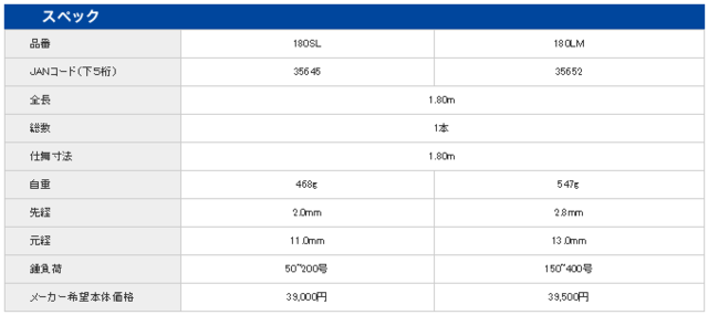 柔軟性をアップさせたSLと、400号までのオモリにも対応可能なLMをラインナップ。エビングや深海釣り、大物釣りにも使用可能なスペックです。