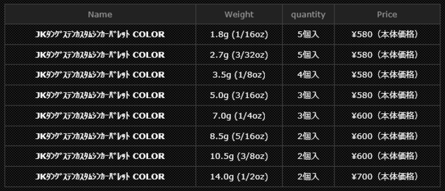 【JACKAL】JKタングステンカスタムシンカー バレットCOLOR