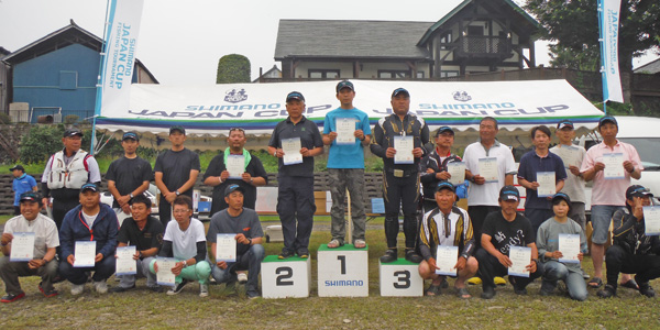 結果は、2回戦の釣果12尾で大野 幸彦選手、笠上 順一選手、横山 政広選手の3名がおられたため、大会規定に従い、1回戦の釣果で順位を決定。