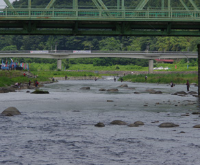 Bブロックは、歩道橋下流側から約3km下流の通称:カニ岩まで。