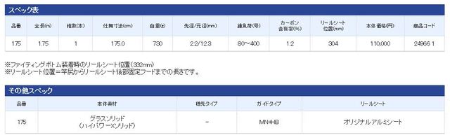 また、強度に優れたHBガイドをダブルラッピングでブランクスに固定したほか、ノンスリップタイプのバーテープを採用したグリップ、軽く高強度のアルミ素材を用いたクッション付きダブルナットやホールドポジション、大型ファイティングボトムなどが脇を固め、問答無用で大型キハダを浮かせる一本に仕上がった。