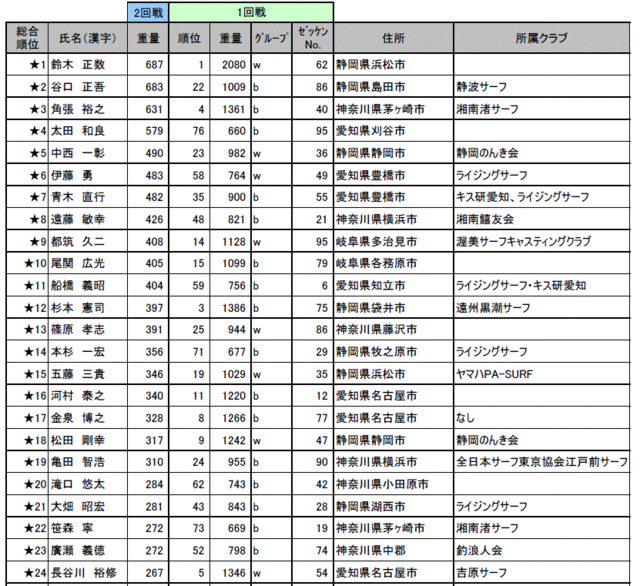 1回戦からトップ2kgオーバーを超える選手も出て多くの方が1kgオーバーと、エキスパートぶりを遺憾なく発揮していただきました。