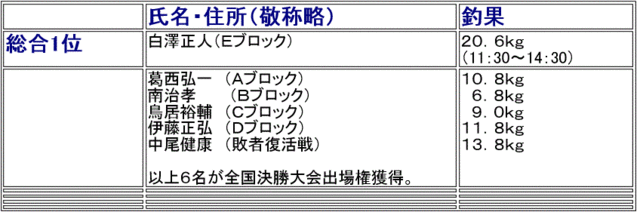 結果は「個人部門」では近藤実さんが11尺のチョーチンウドンセット釣りにて優勝。