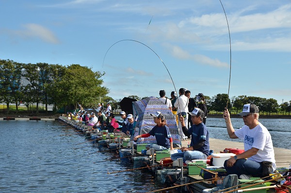 参加人数は個人部門97名(内マルキユースタッフ8名)、ペア部門22組、44名(内TV出演者1組、2名)と合計141名。