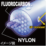 フロロカーボンの持つ低伸度、高感度、耐水性、摩耗性とナイロンの持つ高強力、操作性を高次元で実現!!