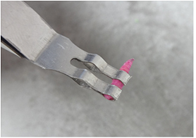 スリット入りなのでつかんだまま針付けやカットが可能。