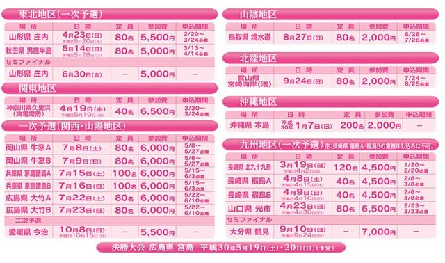 HPより申し込み用紙をダウンロード後、必要事項(郵便番号、住所、氏名、ふりがな、年齢、 電話番号(もしくは携帯電話番号)、所属・クラブ、希望会場、予選日を全てご記入の上、お申し込みください。