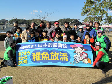 日本釣振興会千葉県支部主催による「親子ワカサギ釣り教室」が平成24年12月9日、千葉県高滝湖で開催されました。20名の募集に対して40名以上の申込みをいただきましたが、釣り座が20名分しかなく、抽選で20名の親子に参加いただきました。