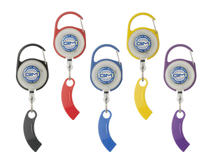 簡単装着カラビナ型ピンオンリール