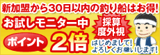 新加盟から30日以内の釣り船は「お試しモニター船」となり、ポイントが通常の2倍となり、超お得です!採算度外視のポイント還元です、ぜひご利用ください。