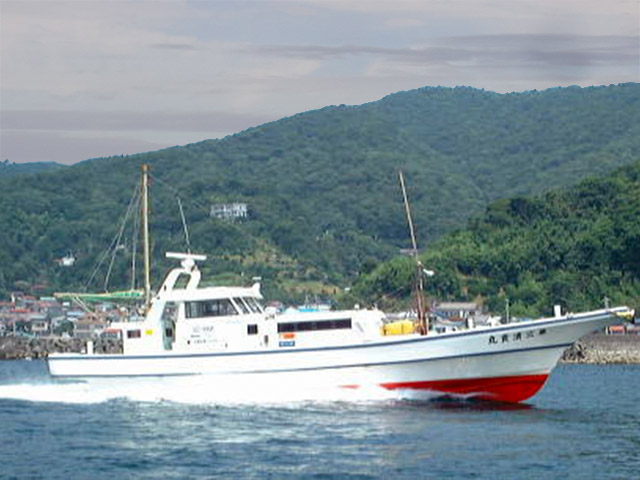 恵比寿丸は全長約12mある大きめの船で、波の揺れにも強くトイレやキャビンなども備えています。