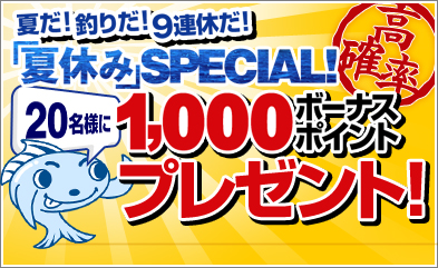 8/10(金)までに8/11(土)~8/19(日)の期間にご乗船いただいた釣割会員様の中からなんと!抽選で20名様に合計1,000ポイントをプレゼントする